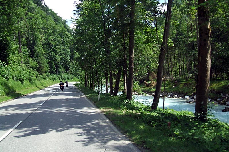 Den in einem Bericht im Wohnmobilforum erwähnten "Camp Tiha" in Šilo auf Krk wollen wir uns mal ansehen. Ob man da auch während der Hauptsaison so direkt am Wasser stehen kann, wie es auf dem Foto zu sehen ist? Aber zunächst müssen wir ja mal durch Österreich, und da gibt es natürlich mehrere Möglichkeiten. Unser TomTom schlägt die Tauernautobahn als schnellste Strecke vor. Nach dem Ausschließen der Autobahnen routet er über die Tauernstraße parallel zur A10, was gut 2 Stunden länger dauern soll. Wir entscheiden uns gegen die Autobahn und die Tunnel, weil wir Berge mögen und etwas von der Landschaft sehen wollen. Und davon finden wir in den nächsten Stunden reichlich, garniert mit traumhaften Straßen, die sich herrlich durch die Hügel schlängeln, so ganz nach unserem Geschmack. Das wäre was, hier mit dem Motorrad...
