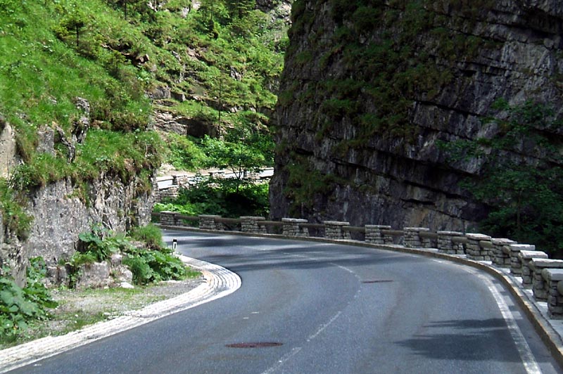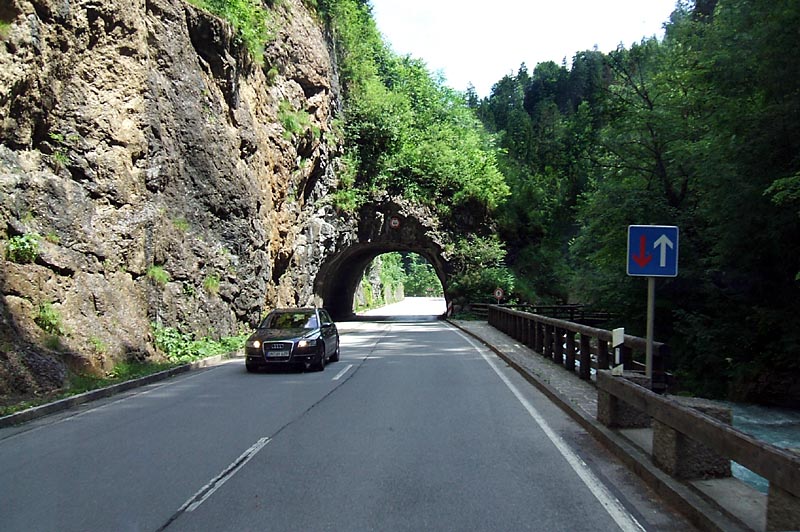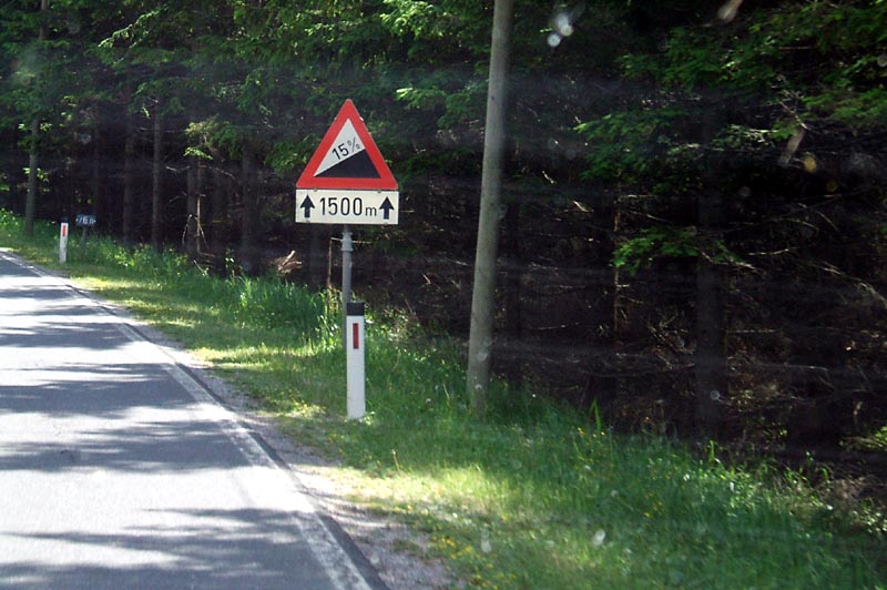 Aber genug geträumt, langsam wird die Strecke steiler, und spätestens ab dem Schild "15% Steigung" am Katschberg heißt es, sich zu konzentrieren. Zunächst geht es ganz gut im 3. Gang, aber wegen der vielen Kehren können wir die dafür notwendige Geschwindigkeit nicht halten und fahren deshalb den Rest des Bergs im 2. hoch. Na also, klappt doch! Auf dem Weg nach unten bleiben wir natürlich im kleinen Gang, aber trotzdem ist die Motorbremse eher dürftig, und so müssen die Bremsbeläge ihre Standfestigkeit beweisen. Irgendwann, so nach der gefühlsmäßig 500. Kurve, fangen sie an, nach verbranntem Metall zu riechen. Aber da hört das Gefälle auch schon wieder auf und die Bremse kann sich wieder abkühlen. Der erste Pass ist geschafft, und so schlimm war es eigentlich gar nicht.